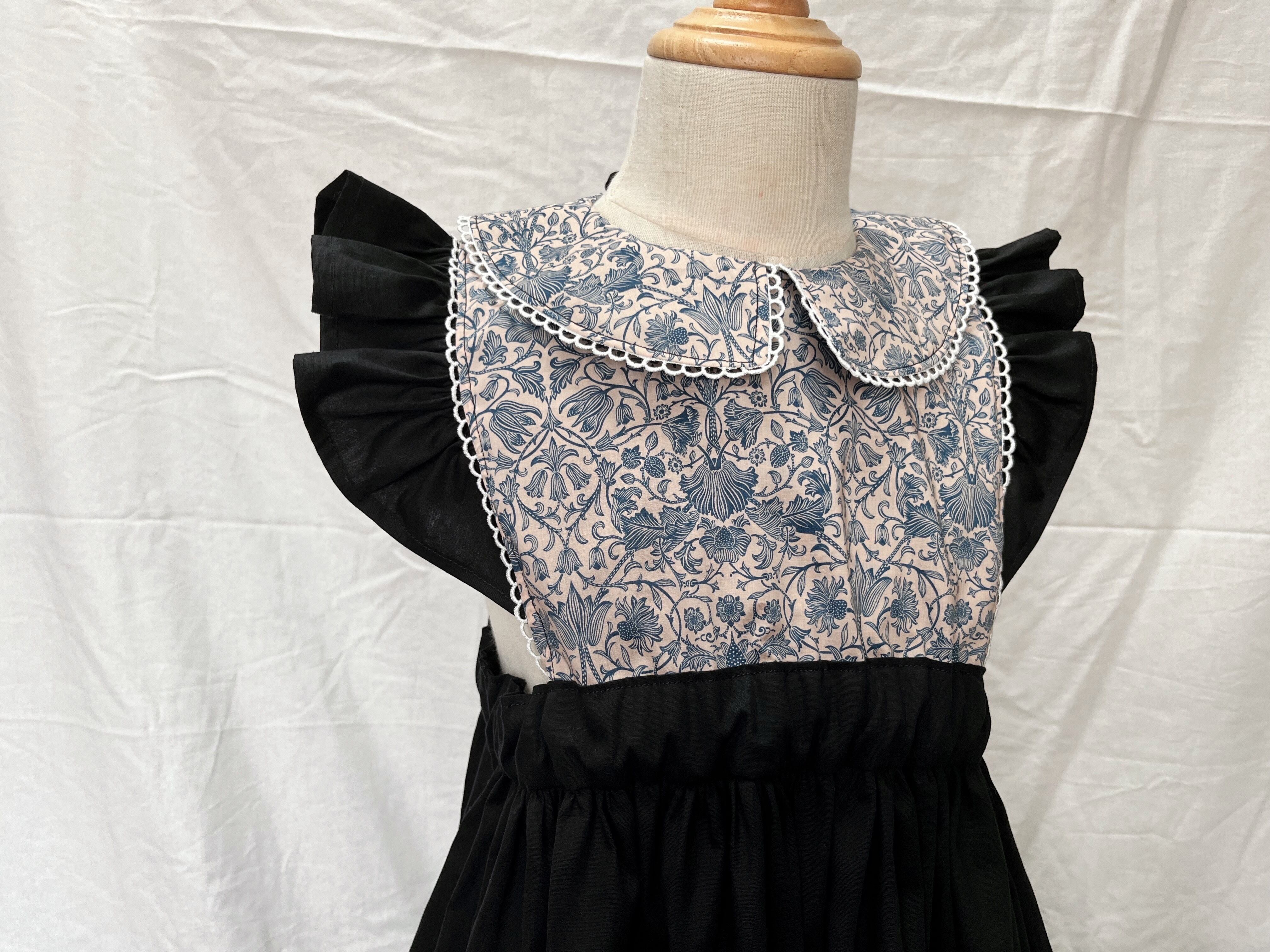 110サイズ(リバティ/Liberty使用)丸襟×肩フリルエプロンワンピース(ロデンウッド)