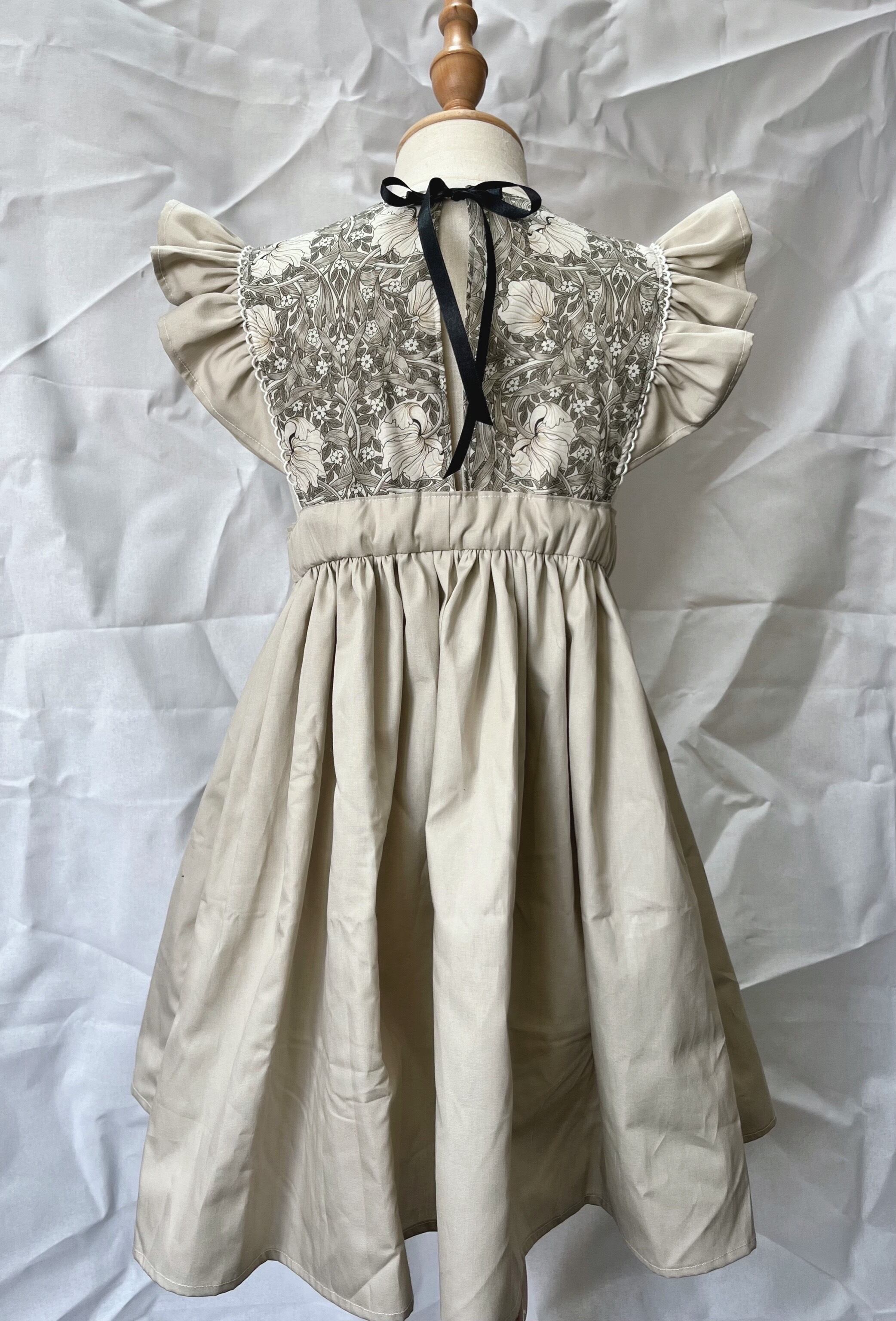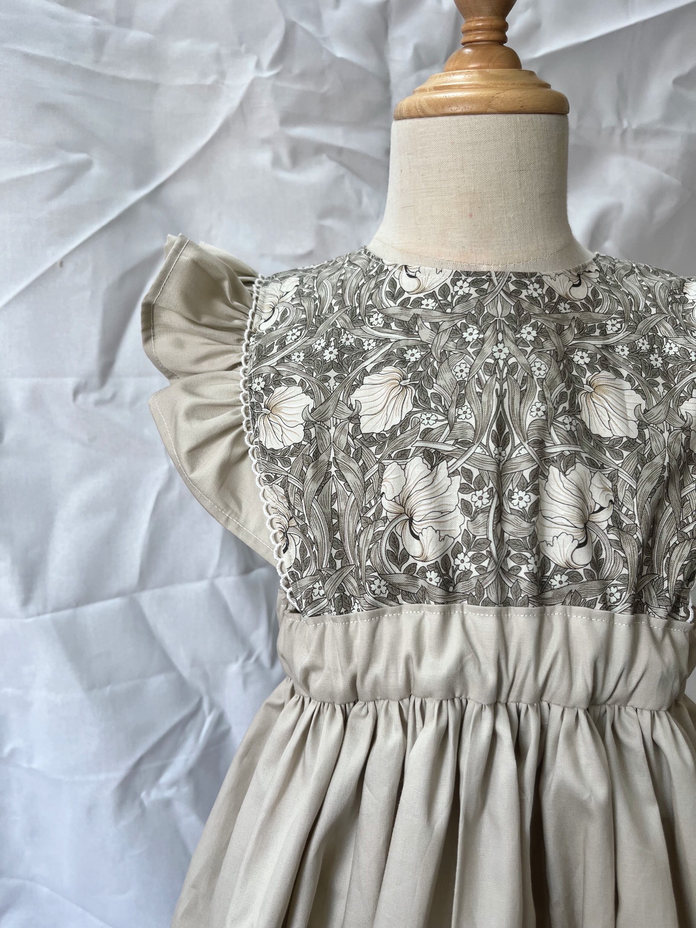 110サイズ(William Morris使用)肩フリルエプロンワンピース(ピンパーネルエクリュ)