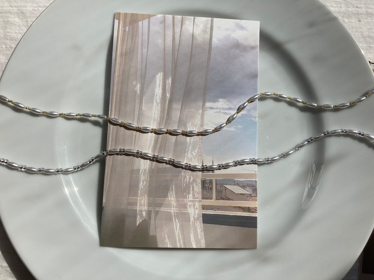 ビーズネックレスはテグス使用のため、強く引っ張ると切れてしまう可能性がございます。