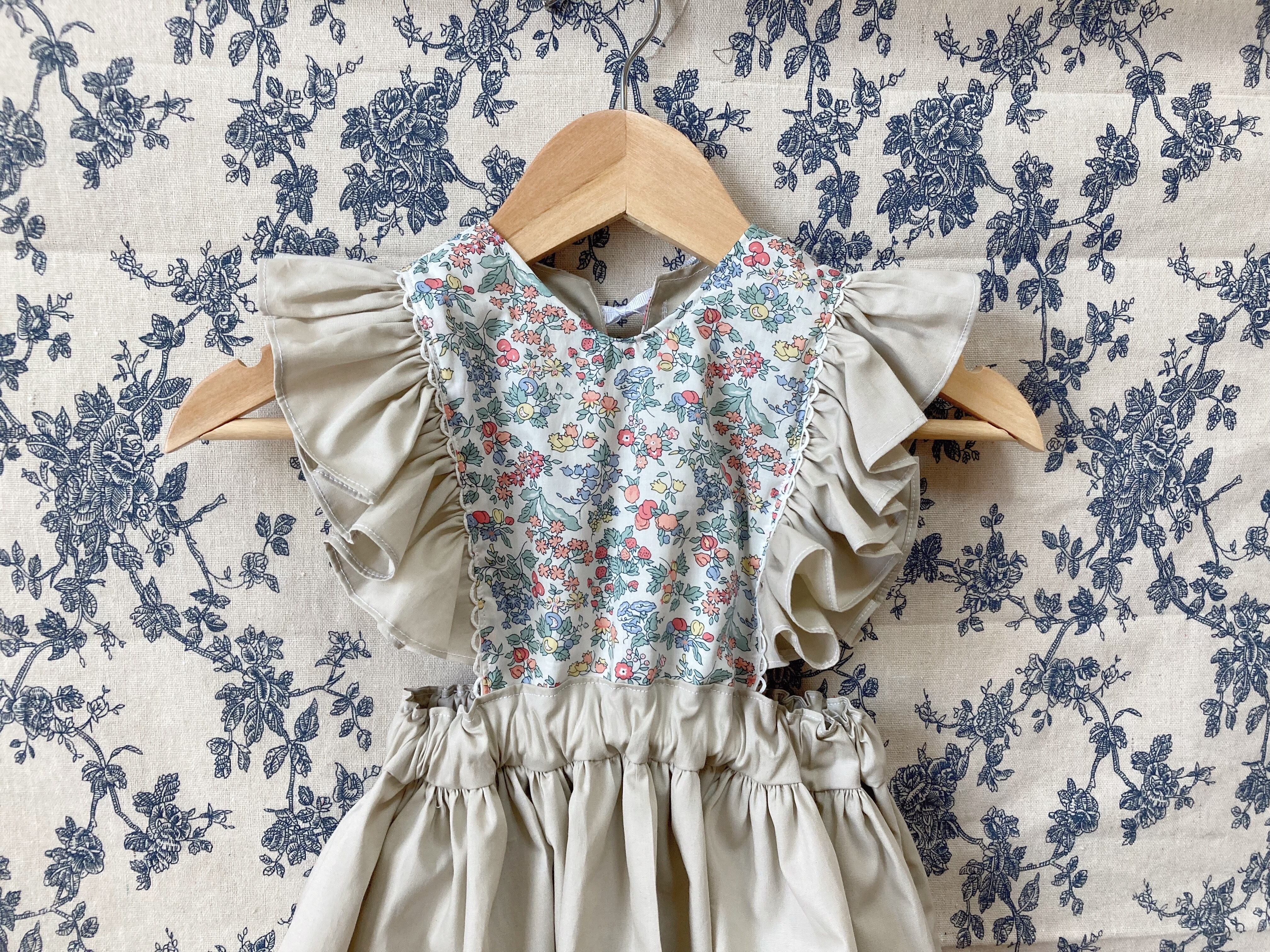 (リバティ/Liberty使用)肩フリルエプロンワンピース(ナンシーアン)