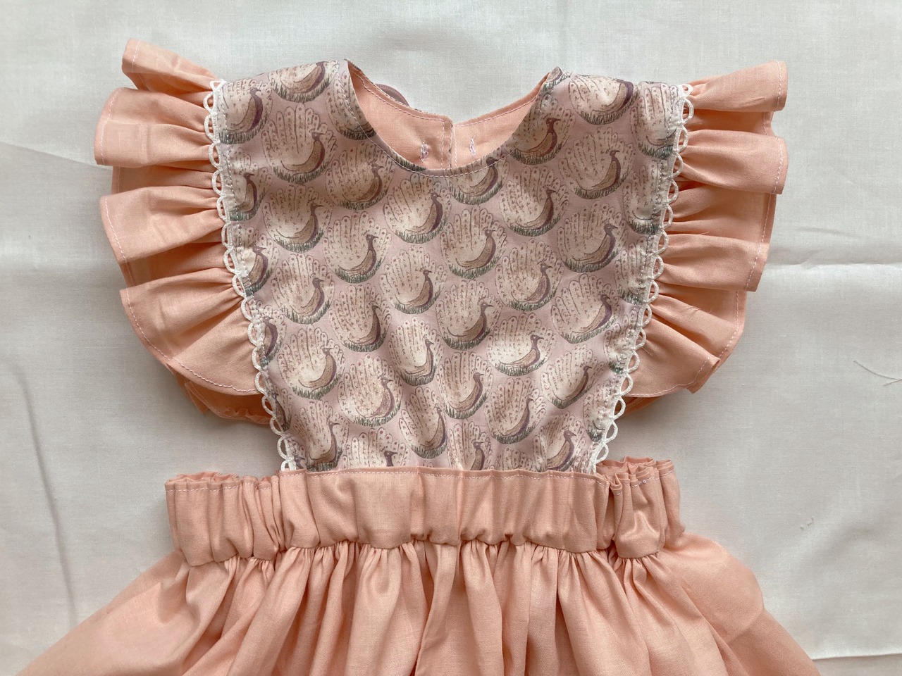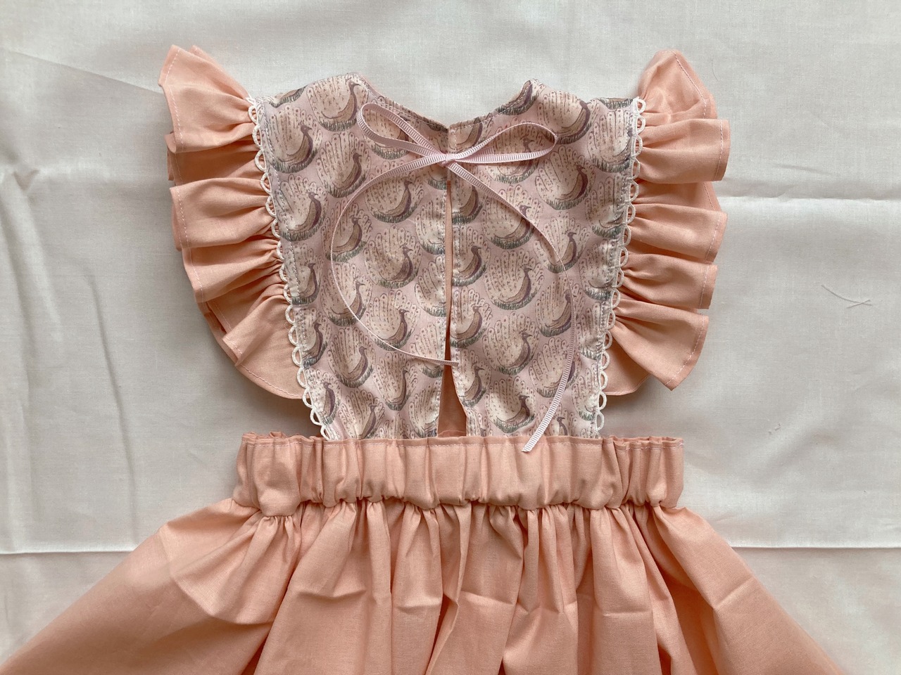 (リバティ/Liberty使用)肩フリルエプロンワンピース(ピーコックス)