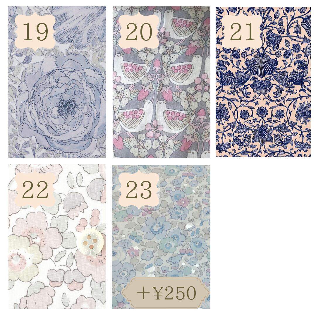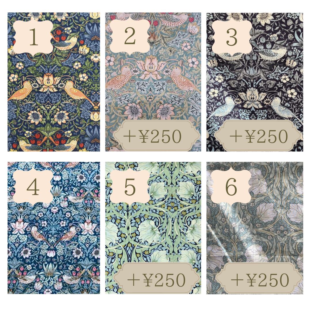 輸入リバティ生地や限定生地はプラス料金となっております。