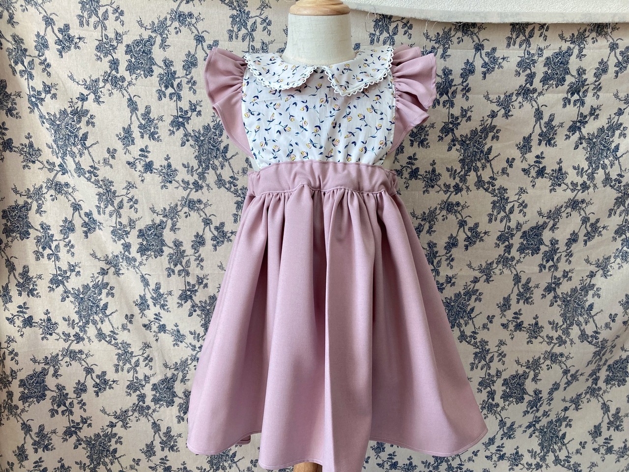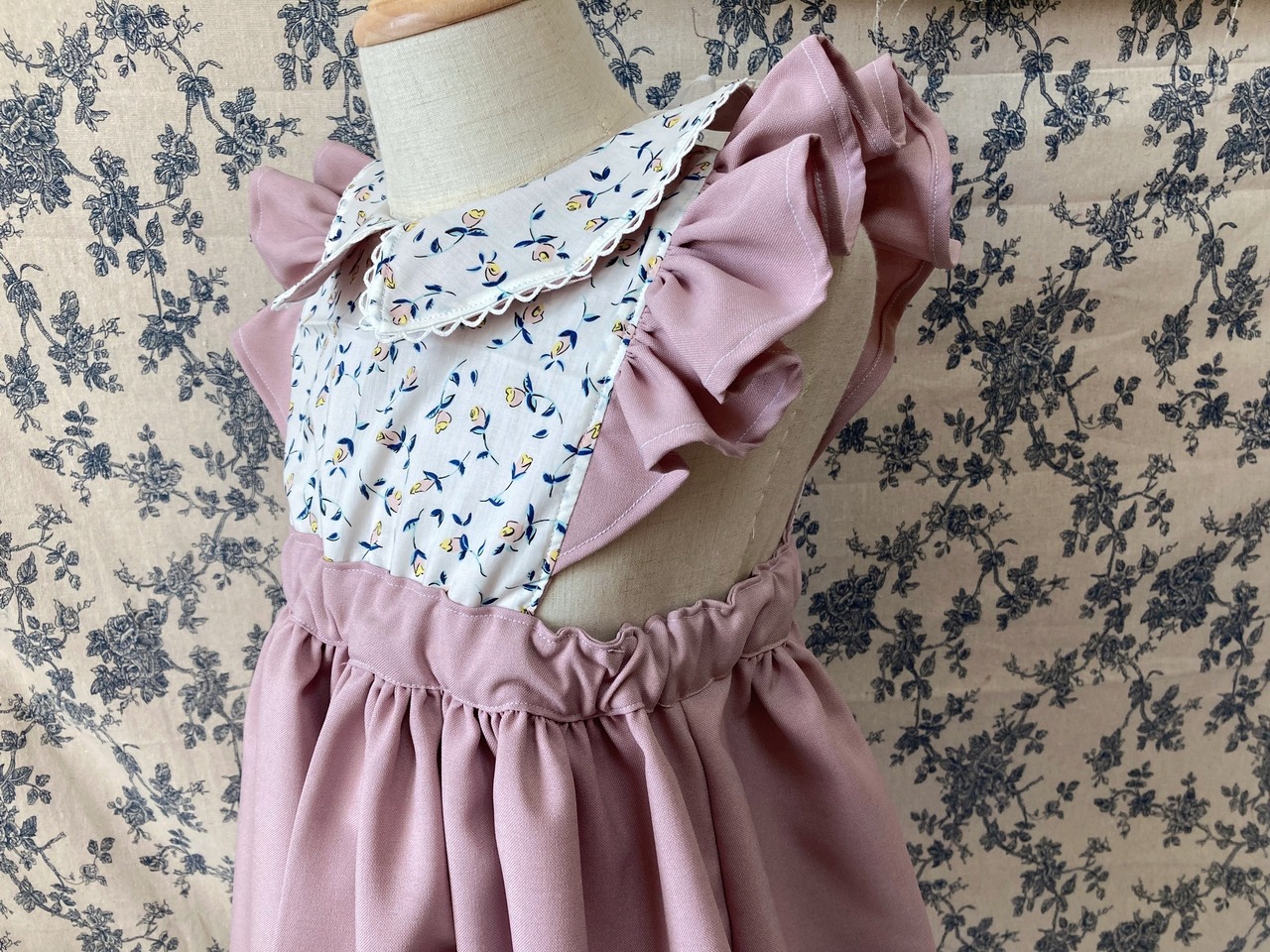 (リバティ/Liberty使用)丸襟×肩フリルエプロンワンピース(フローティングフローラ)
