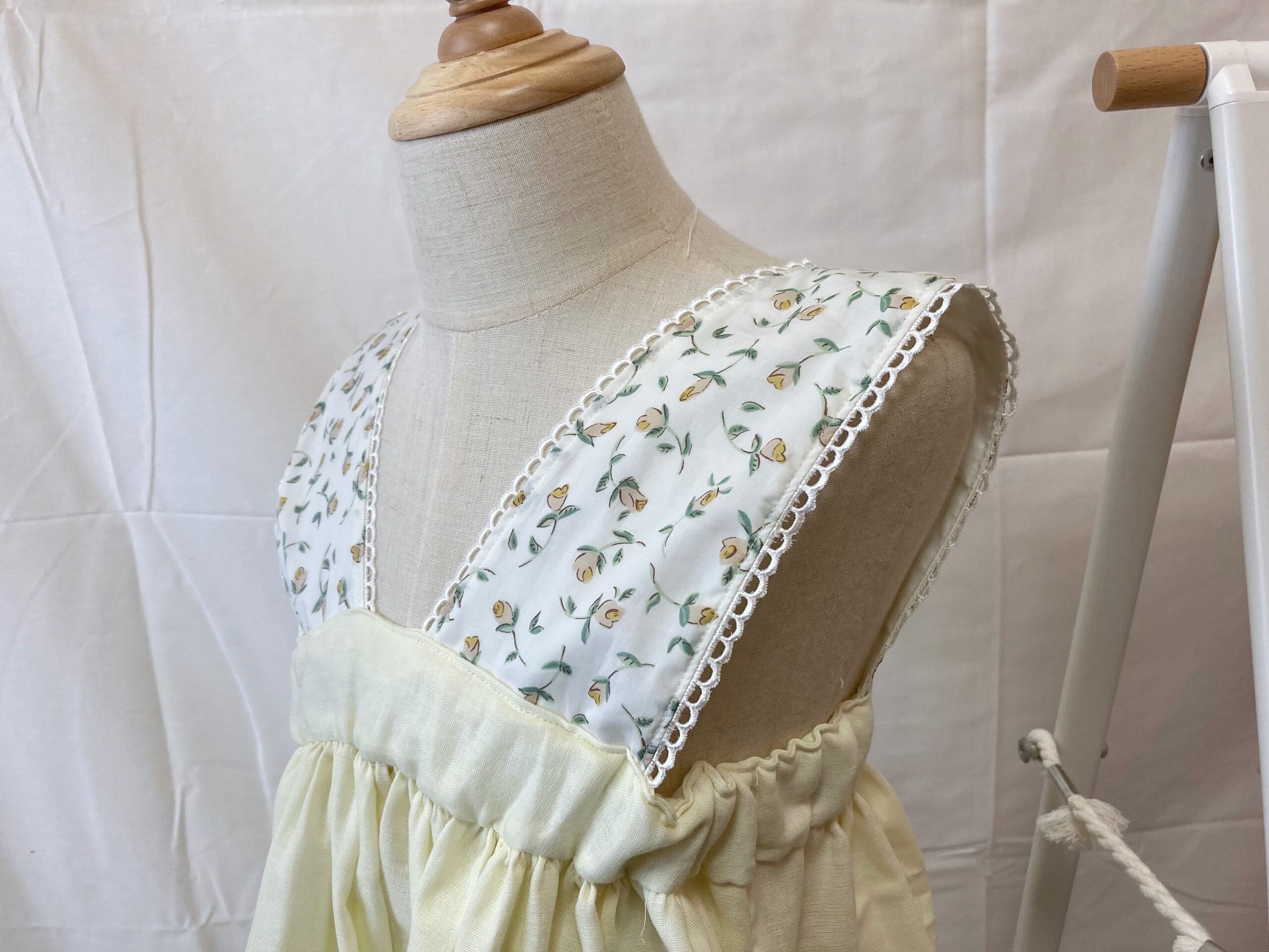 フランスからのSous le figuier Fabricsの人気柄グーズベリーと、Libertyの人気柄フローティングフローラのジャンパースカート○