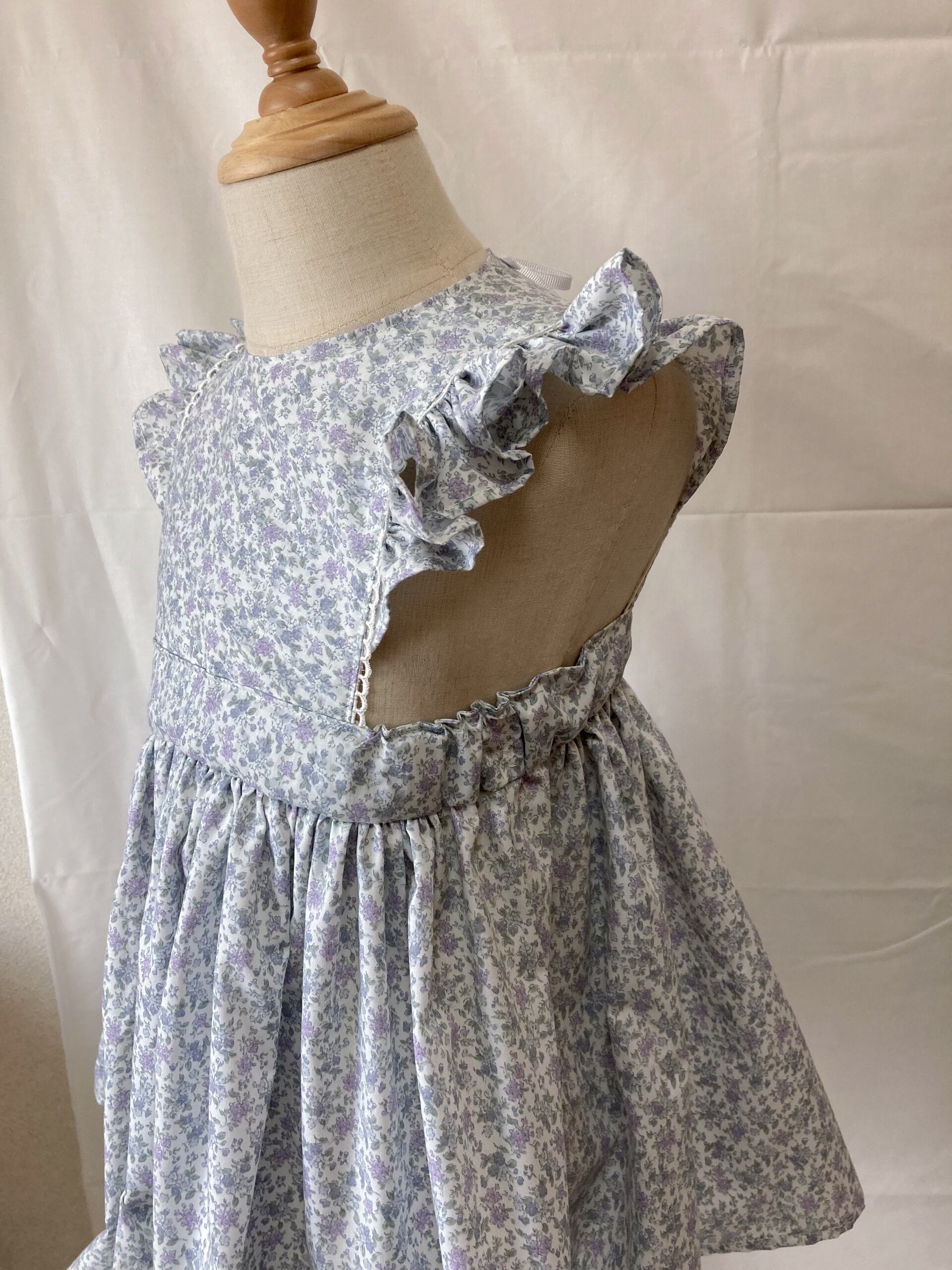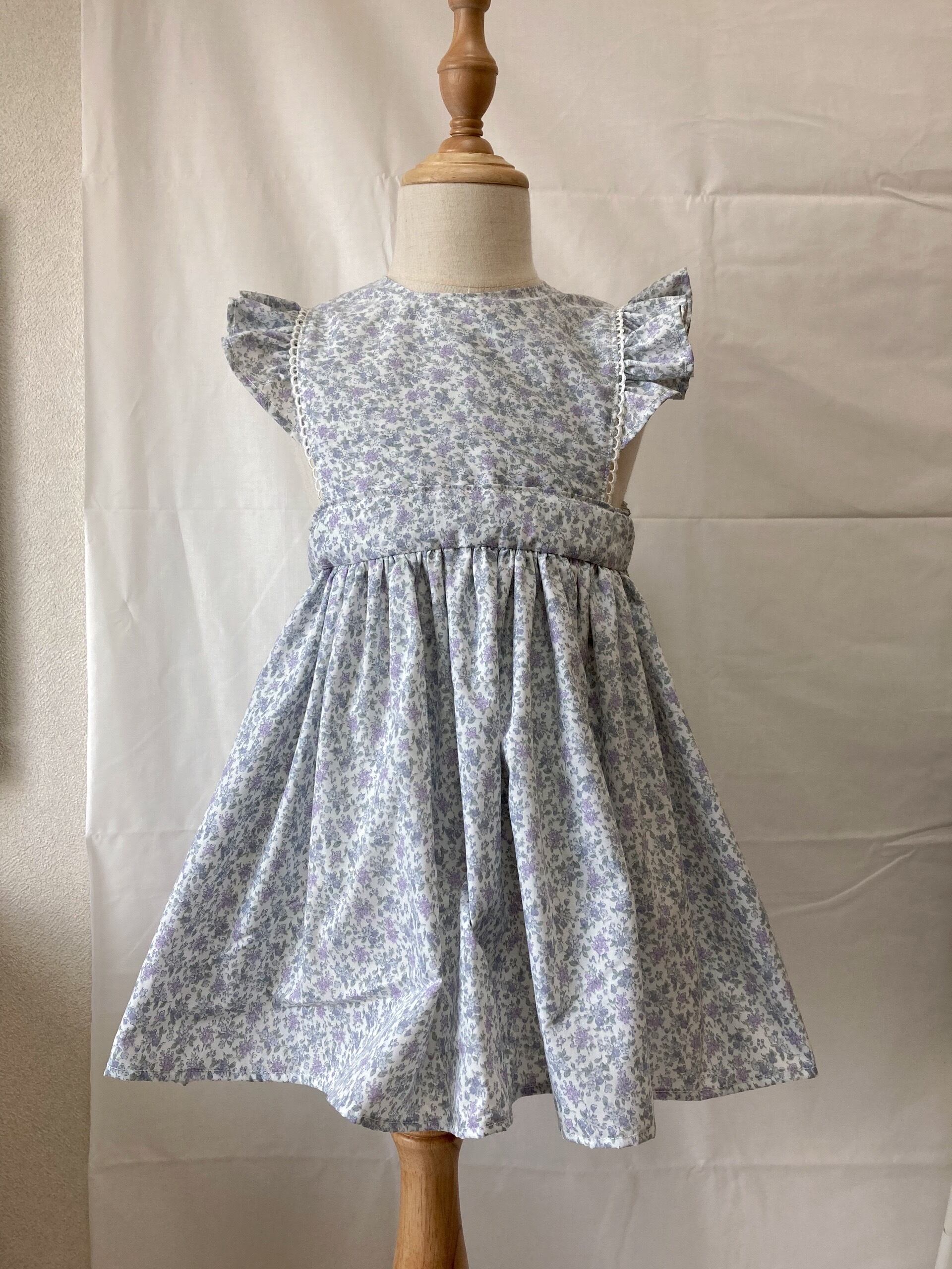 花柄肩フリルエプロンワンピース