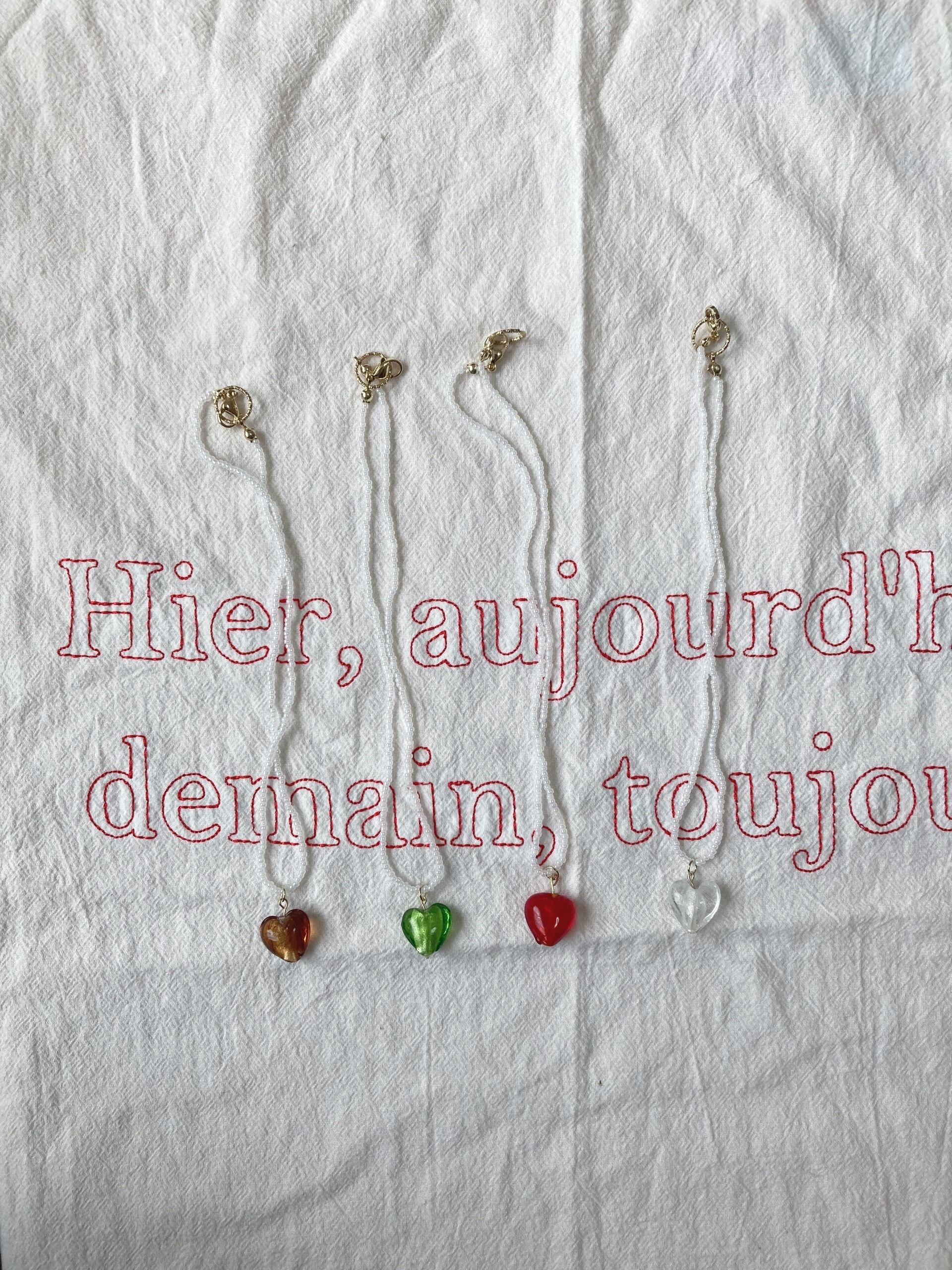 4種類のハートチャームとビーズネックレスの組み合わせ