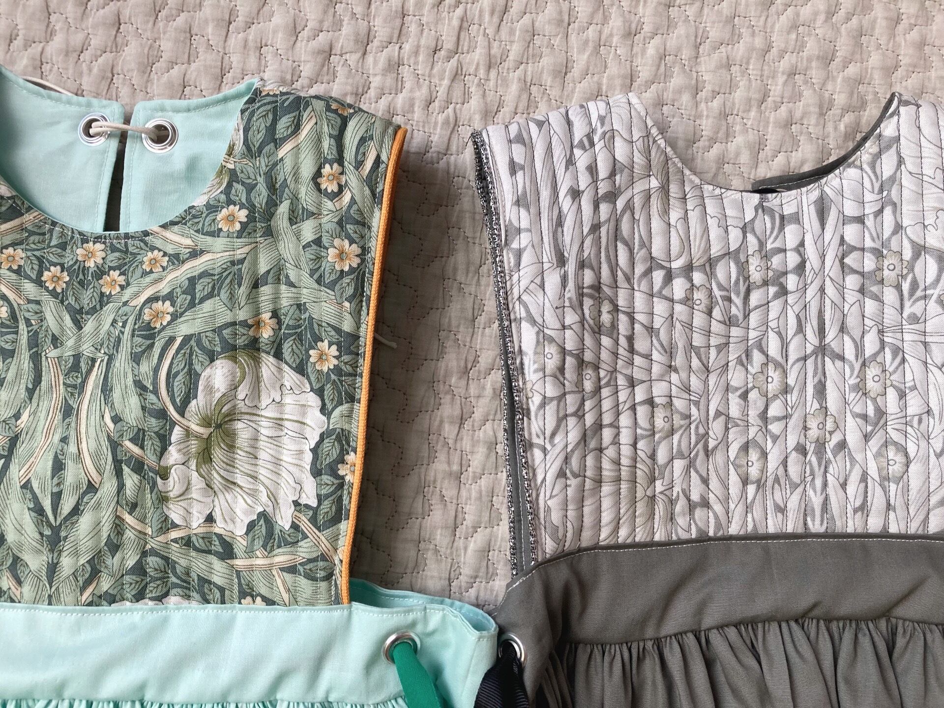 右(WilliamMorris/ウィリアムモリス使用)キルティングエプロンワンピース(ピンパーネル/フランス輸入)