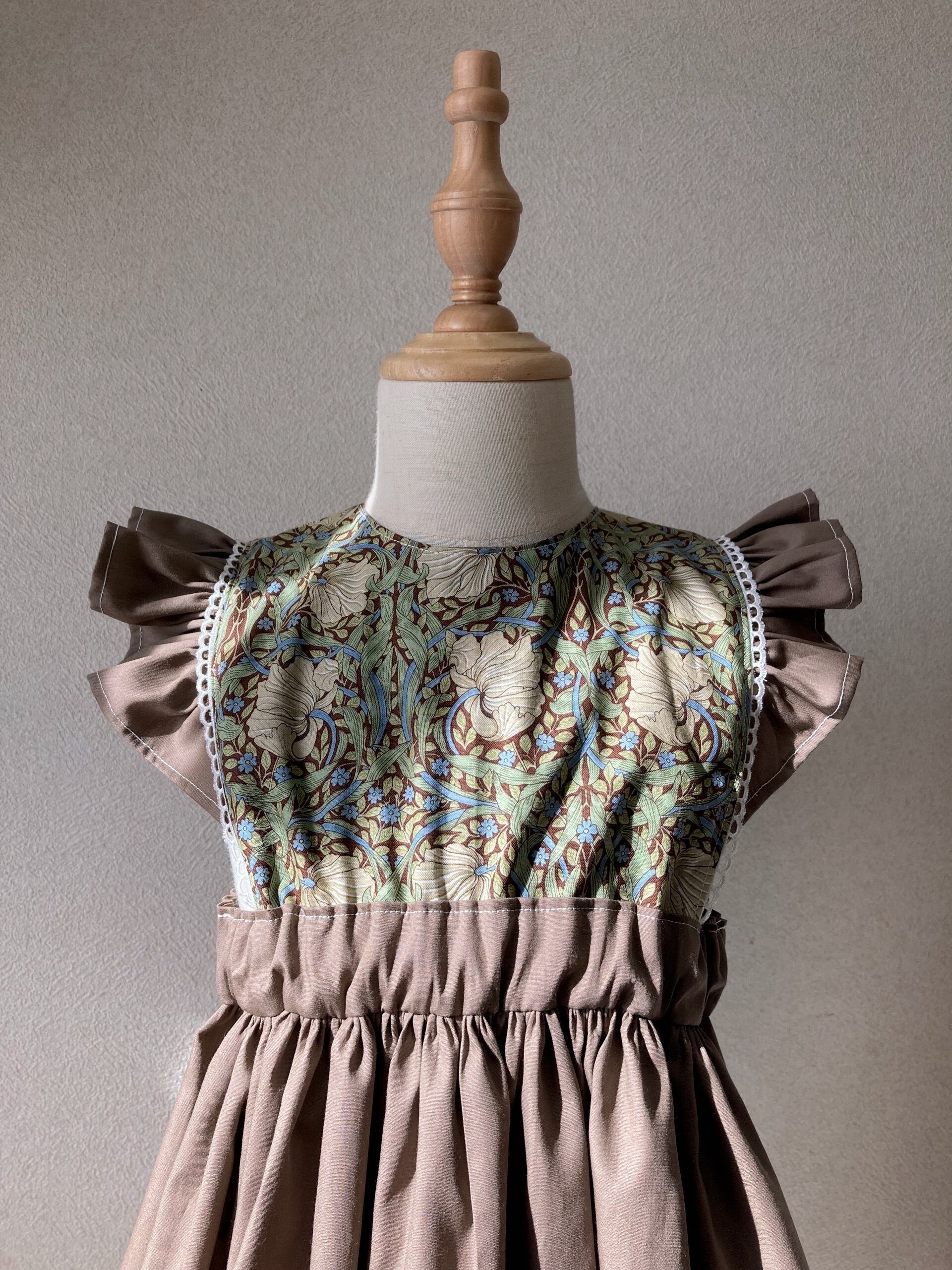 (William Morris使用)肩フリルエプロンワンピース(ピンパーネル)