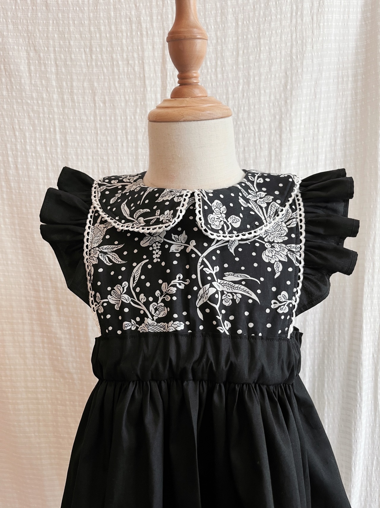 (マロリー/リバティ使用)丸襟×肩フリルエプロンワンピース