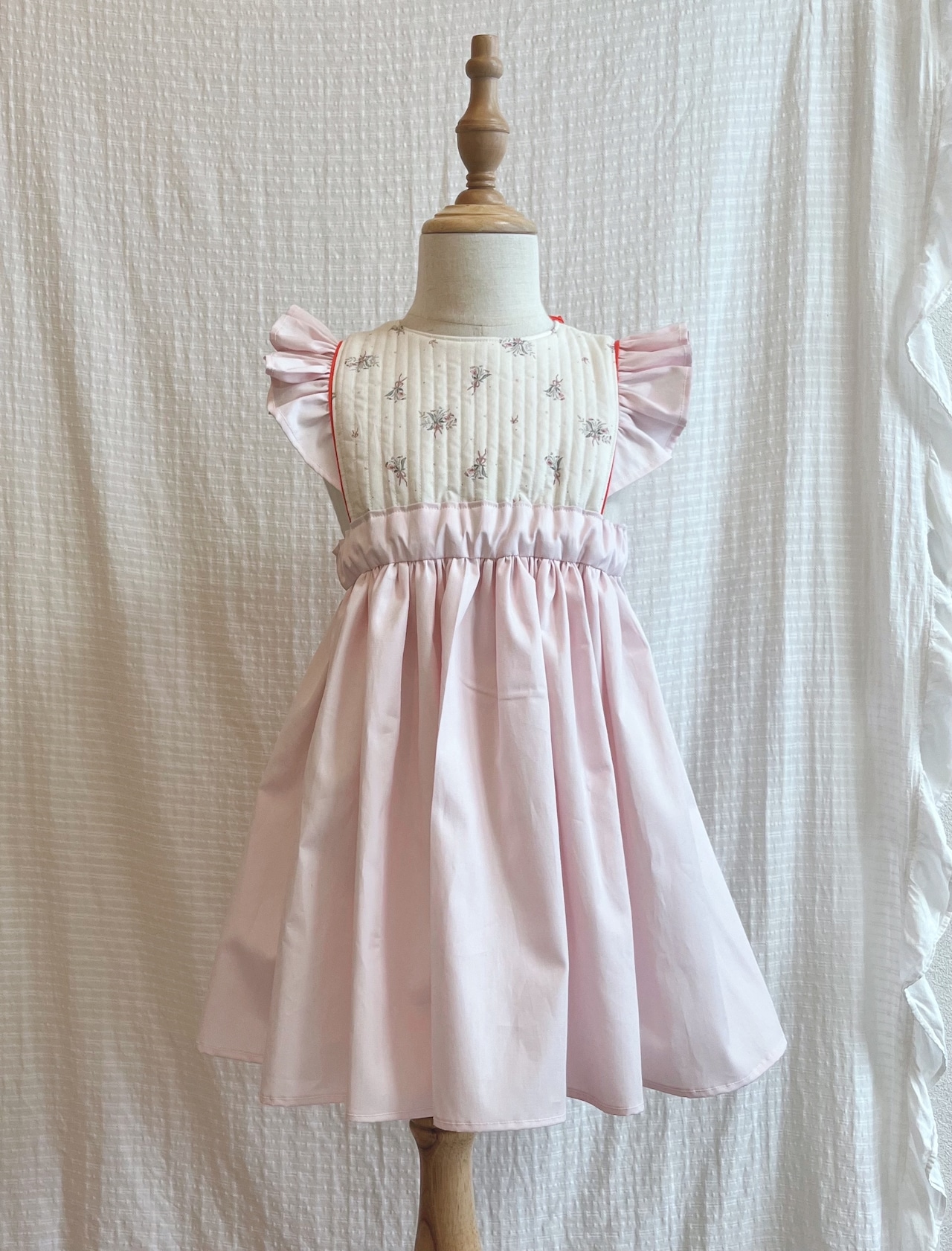 (フランス輸入/Sous le figuier Fabrics使用)キルティング×肩フリルエプロンワンピース(ポンパドール )