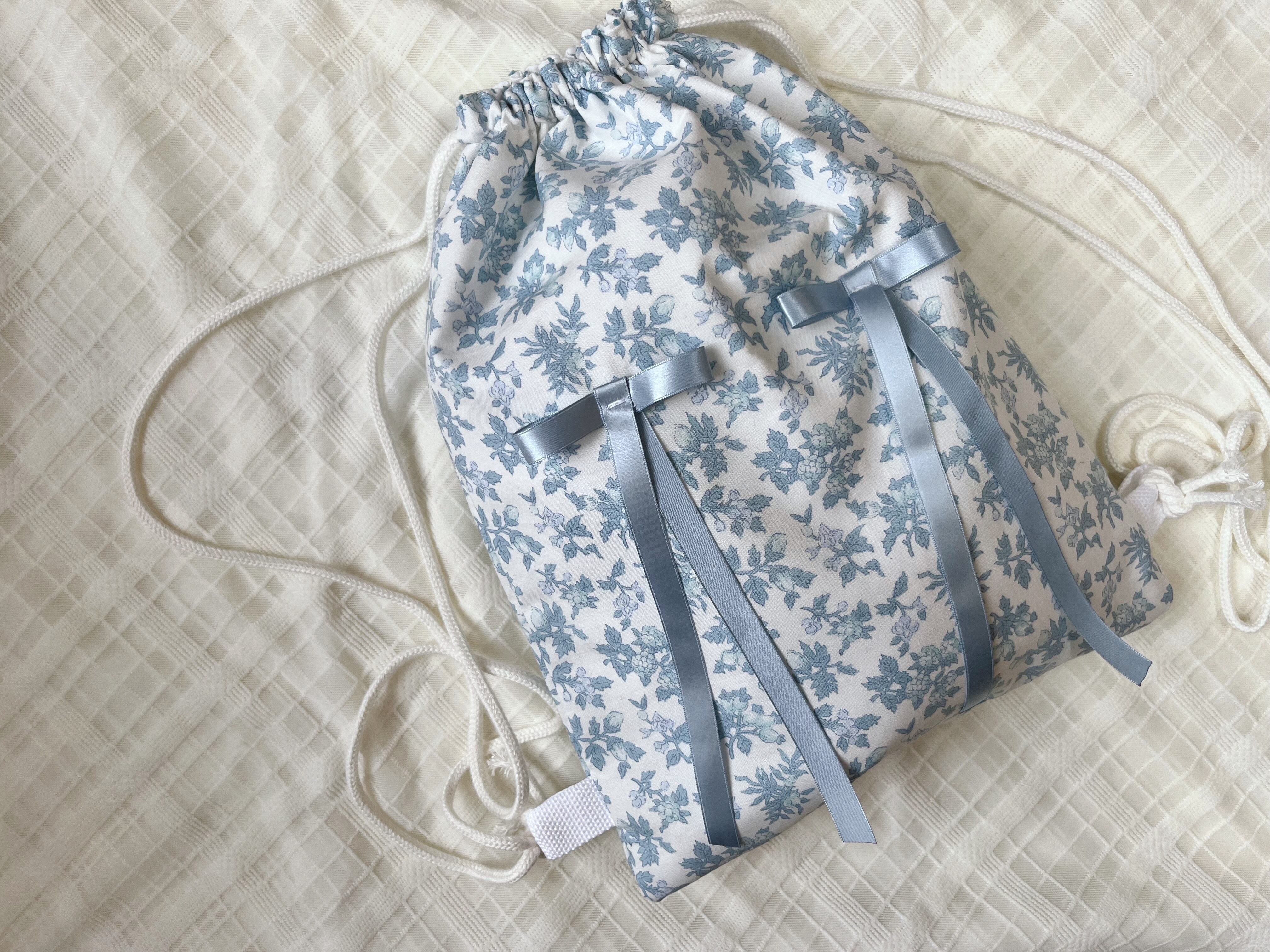○シンプルリボン巾着リュックサック(キッズサイズ)(knapsack/backpack/ribbon bag)