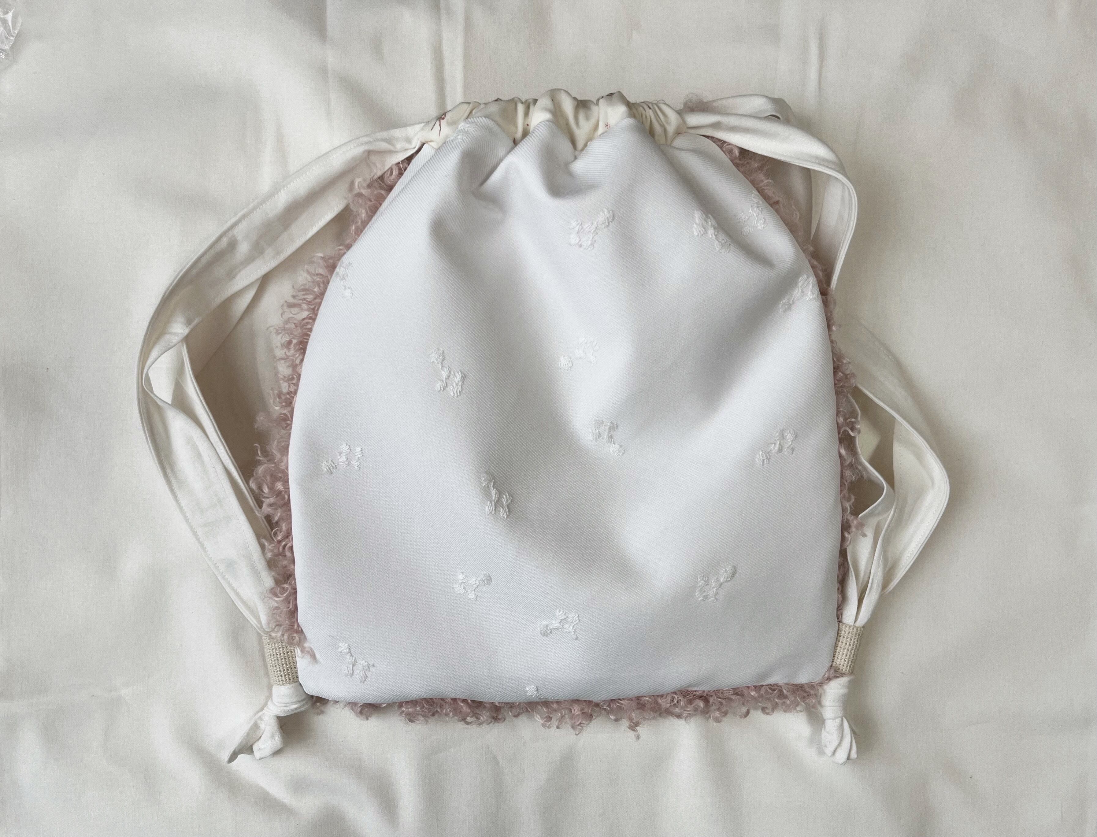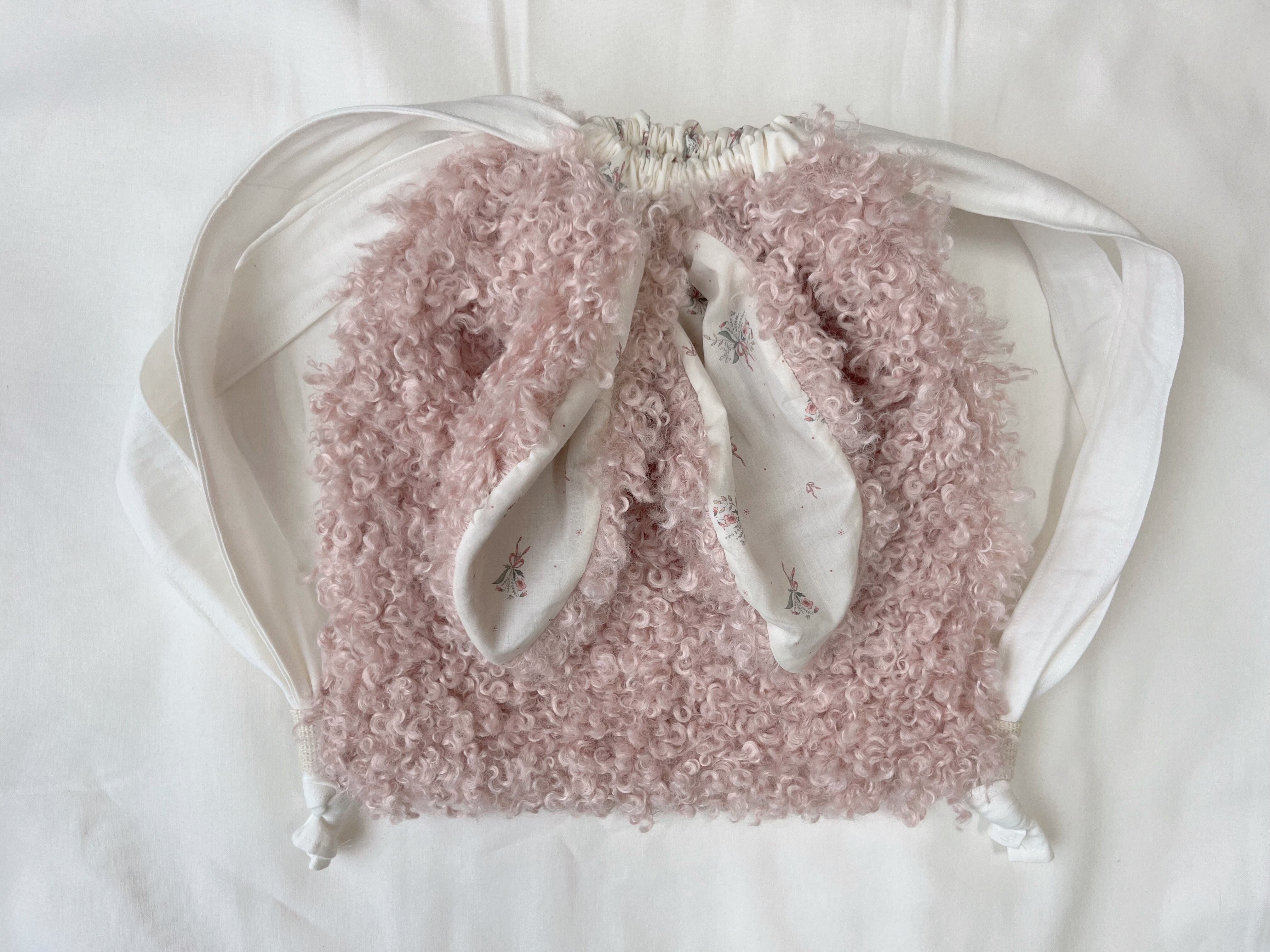 ○うさ耳付きふわふわナップサック(Sous le figuier Fabrics/ポンパドール/巾着リュック)